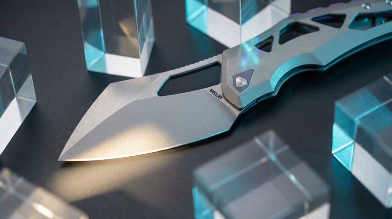 Artisan Cutlery Tortoise 1884G S35VN Steel Blade Titanium Handle Folding Knives