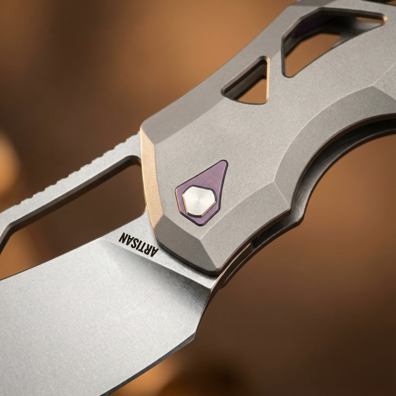 Artisan Cutlery Tortoise 1884G S35VN Steel Blade Titanium Handle Folding Knives - Purple is backordered and will ship as soon as it is back in stock.