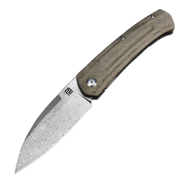 Artisan Cutlery Centauri ATZ-1839GD Damascus Blade Micarta and Titanium Handle Folding Knives - ODG Micarta is backordered and will ship as soon as it is back in stock.