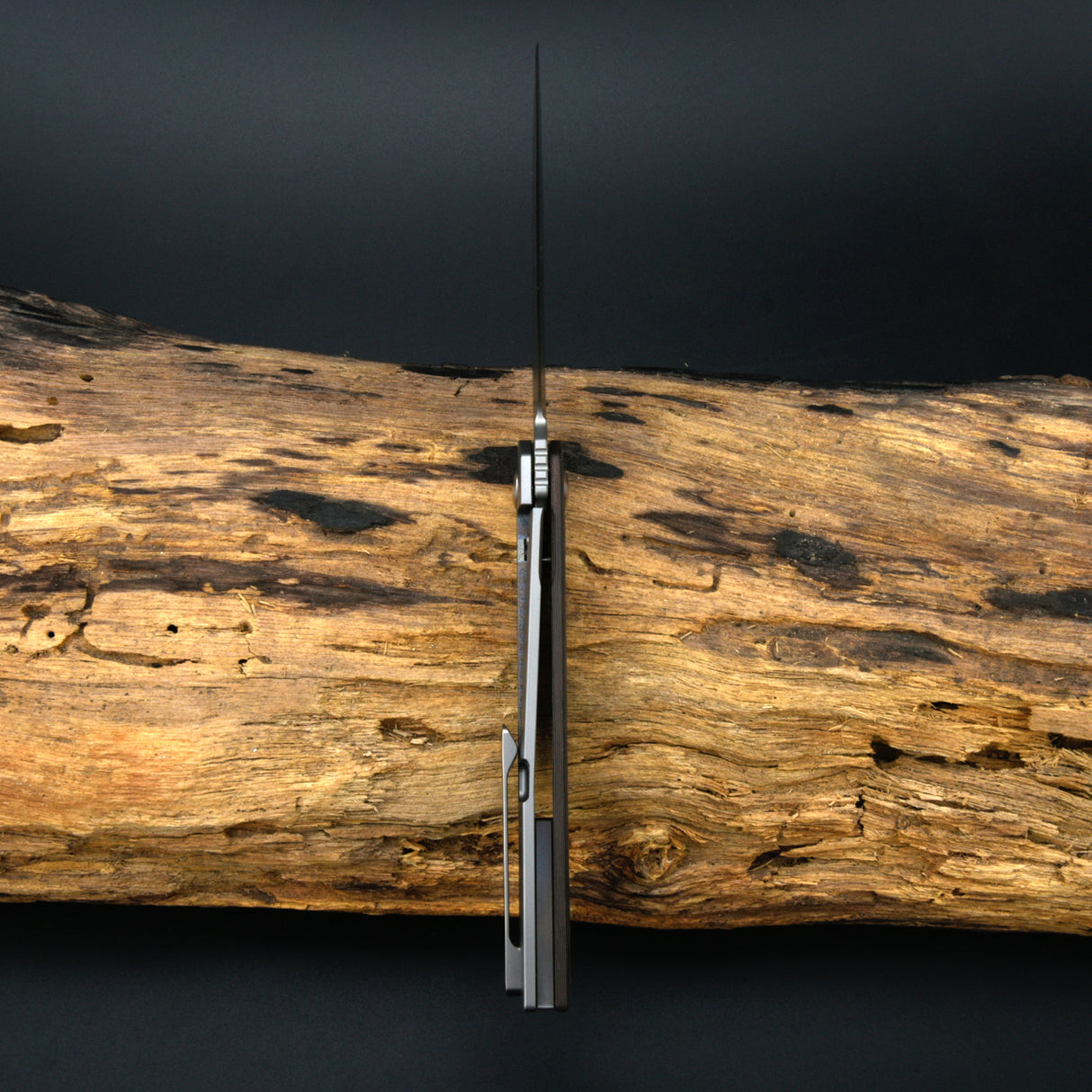 The 1849 Sirius is a sleek gentleman's flipper knife designed by Ray Laconico. Its clean lines and unobtrusive profile provide comfort while carrying it in your hand or pocket. The drop point blade is deployed either the front flipper tab or the recessed thumb stud, and the blade flies open thanks to Artisan's standard ceramic ball bearing pivot design that works so well. When closed, the blade almost disappears into the handle and the thumb stud moves discreetly into a milled groove to reduce the profile as much as possible. The handles are comfortable in the hand and come in a variety of materials to suit what you are looking for. With a simple, clean pocket clip, the Sirius is easy to carry and impresses in any situation you would bring it in to.