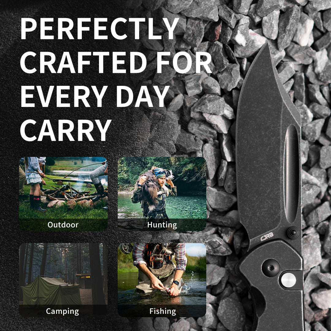 CJRB Bowie Pyrite J1942 AR-RPM9 Steel Blade Stone Wash Steel Handle Folding Knives - Black is backordered and will ship as soon as it is back in stock.