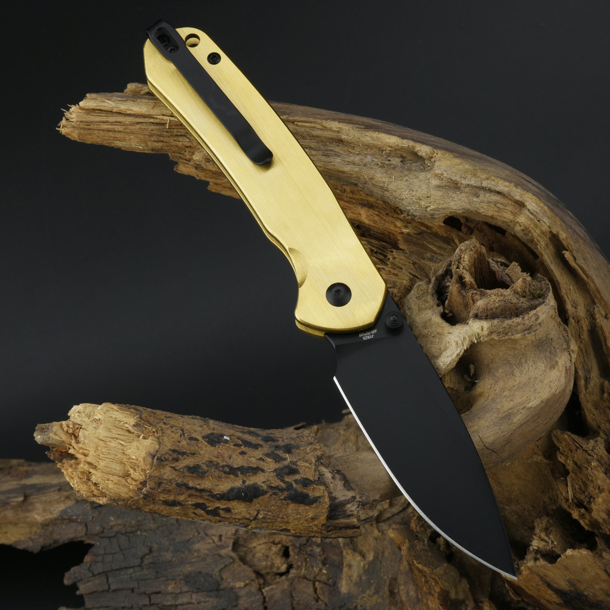 CJRB Pyrite J1925 AR-RPM9 Steel Blade Steel Handle Folding Knives Brass Color - Black PVD Coating is backordered and will ship as soon as it is back in stock.