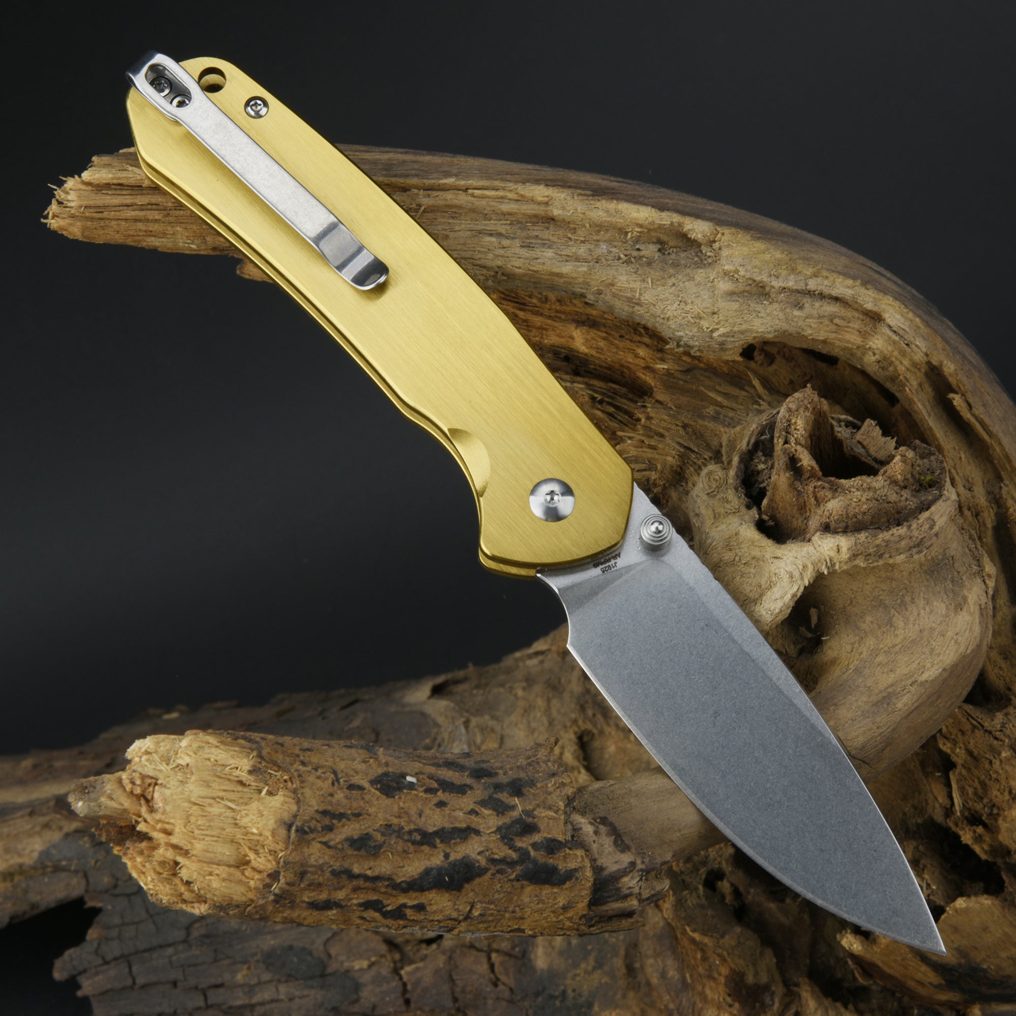 CJRB Pyrite J1925 AR-RPM9 Steel Blade Steel Handle Folding Knives Brass Color