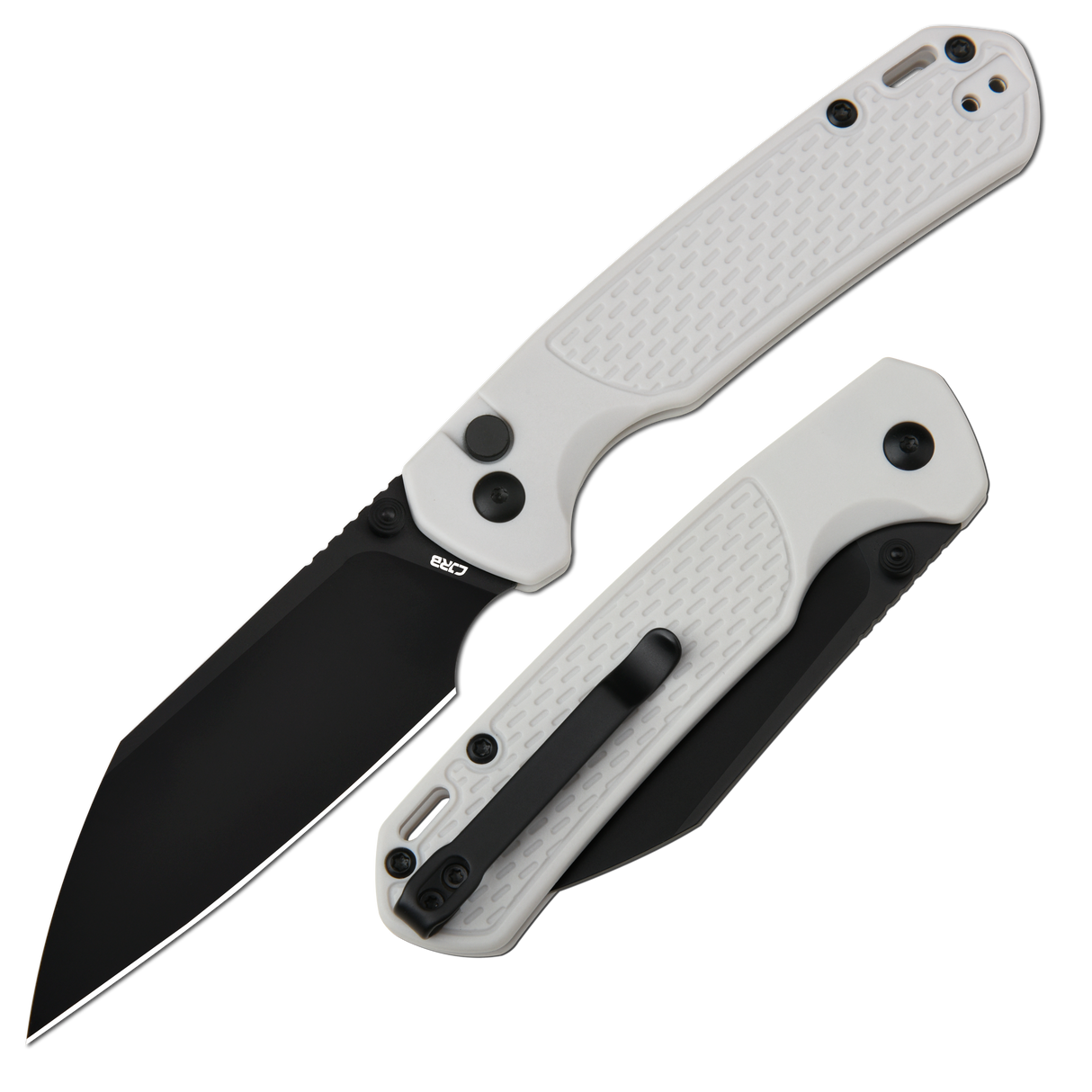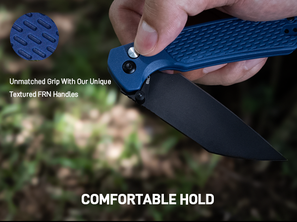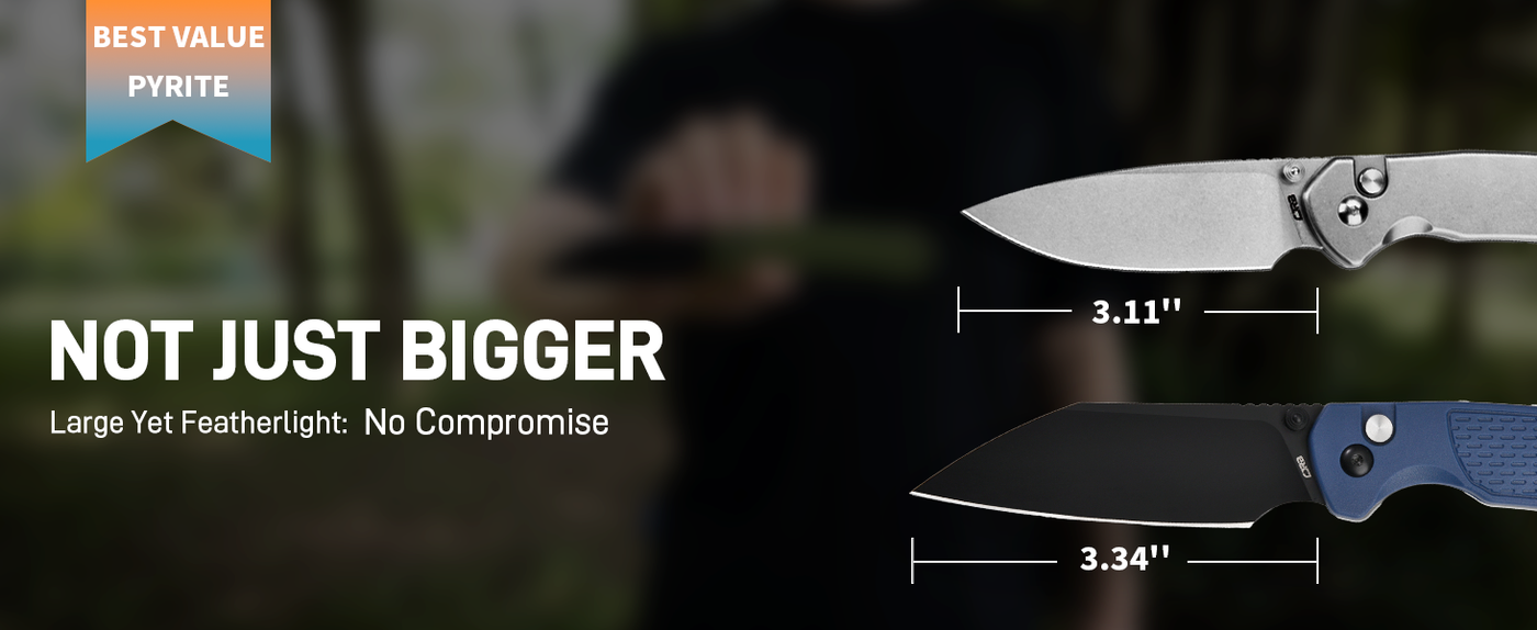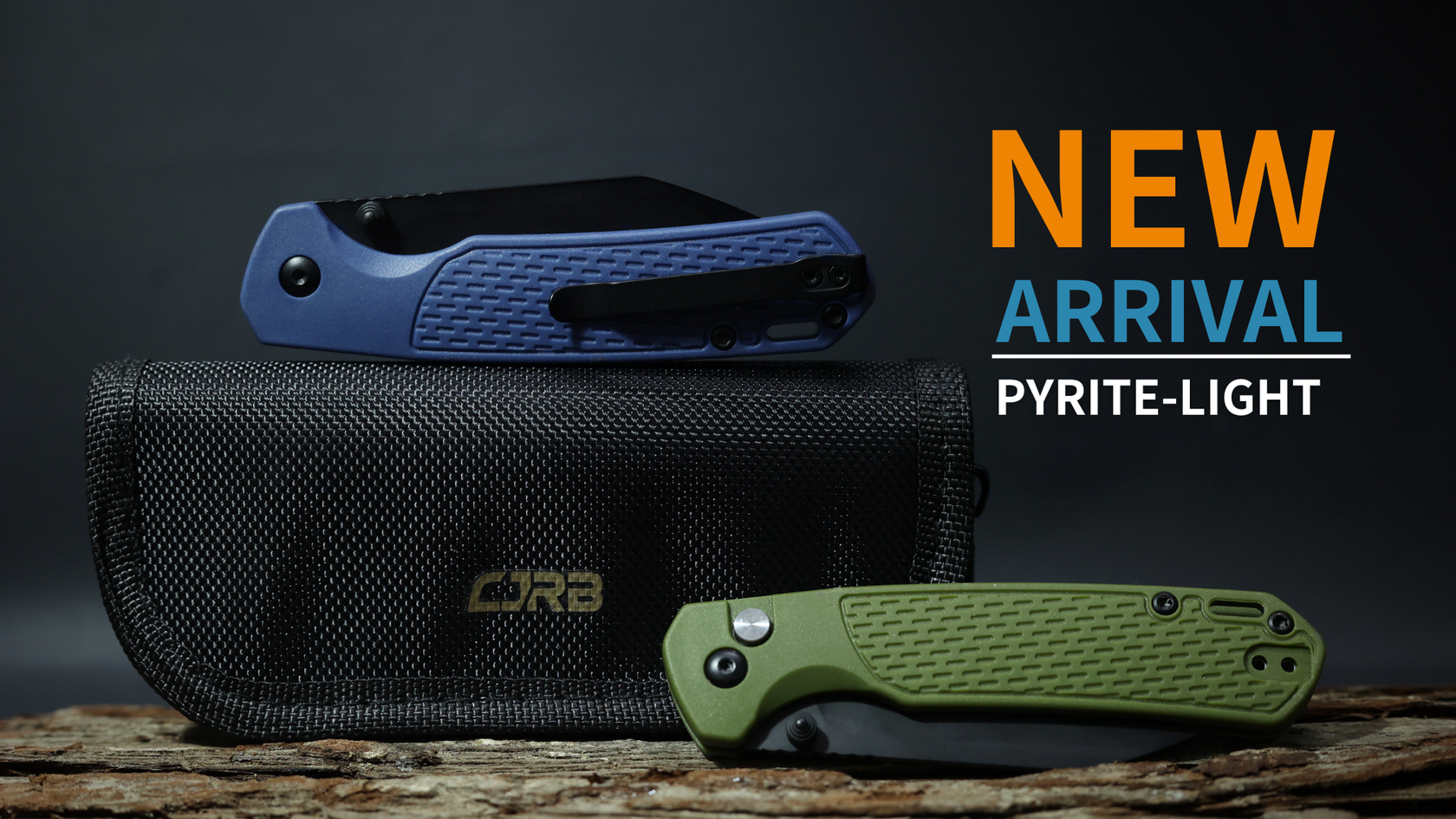 CJRB Pyrite-Light J1945 AR-RPM9 Steel Blade FRN Handle Folding Knives - Black PVD / Blue is backordered and will ship as soon as it is back in stock.
