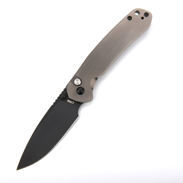 CJRB Pyrite J1925 AR-RPM9 Steel Blade Steel Handle Folding Knives Smoky Gray - Black PVD Coating is backordered and will ship as soon as it is back in stock.