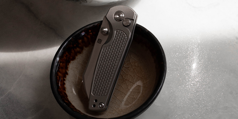 ArtisanCutlery Cleo ATZ-1871G CPM S90V Blade Titanium Handle Folding Knives