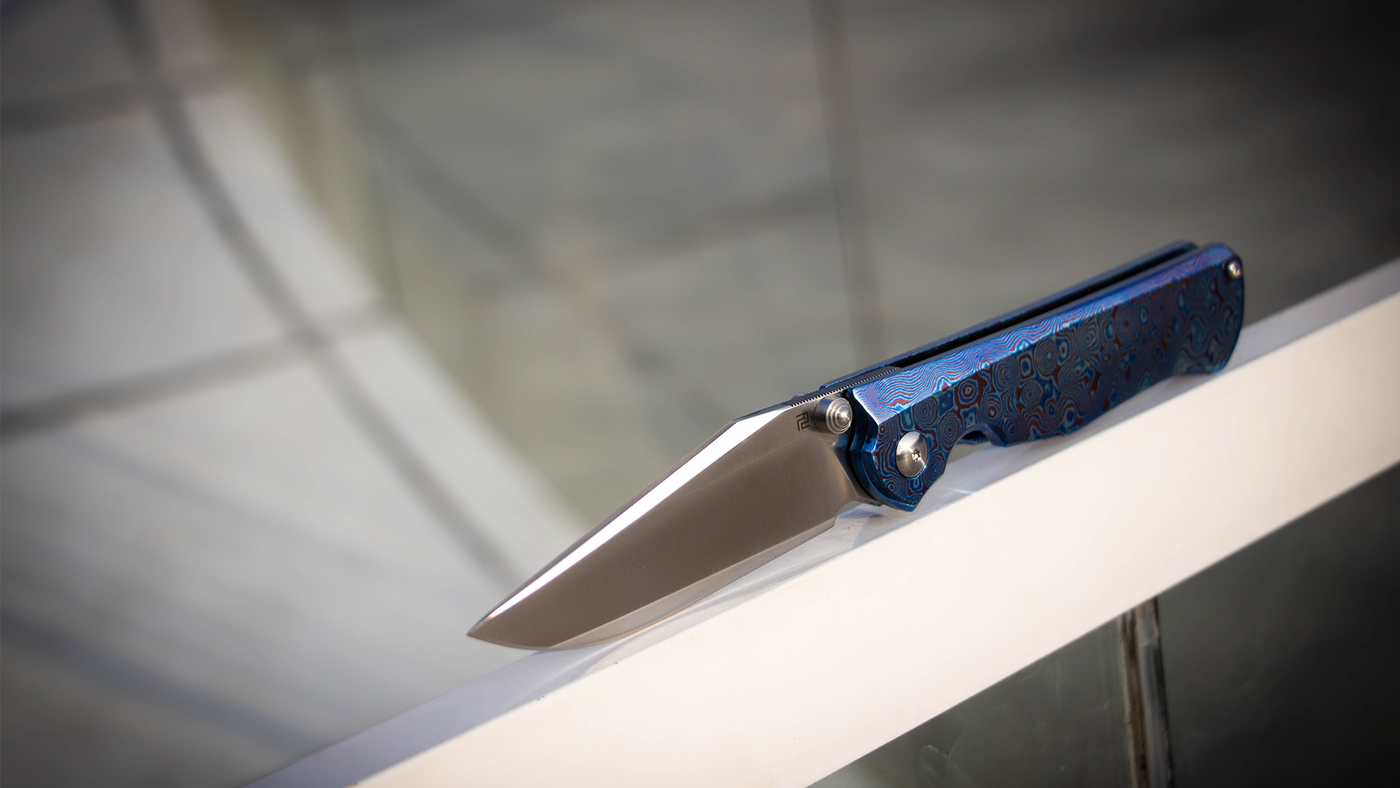 ArtisanCutlery Crusoe ATZ-1869G S90V Blade Titanium Damascus Handle Folding Knives