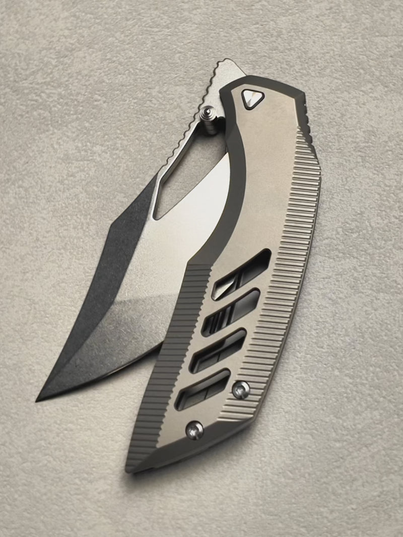 ArtisanCutlery Dark Wing Thumb Hole & Front Flipper Frame Lock EDC Knife Titanium Handle(3.63'' S35VN Stone Wash Blade ) 1887G-GY