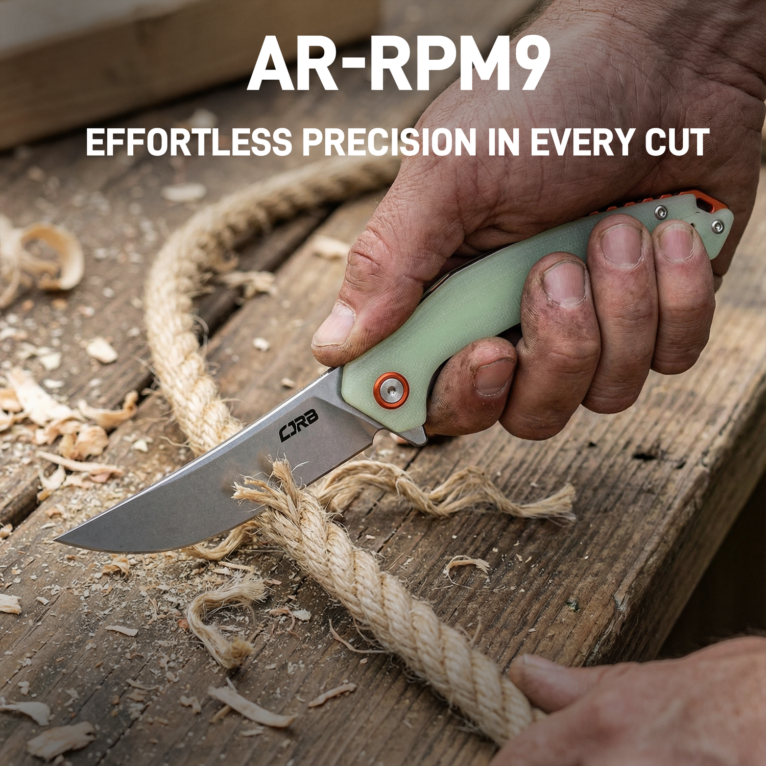 CJRB Gobi Flipper & Liner Lock G10(Glow In the Dark) Handle (3.5'' Stone Wash AR-RPM9 Blade) J1906-GD